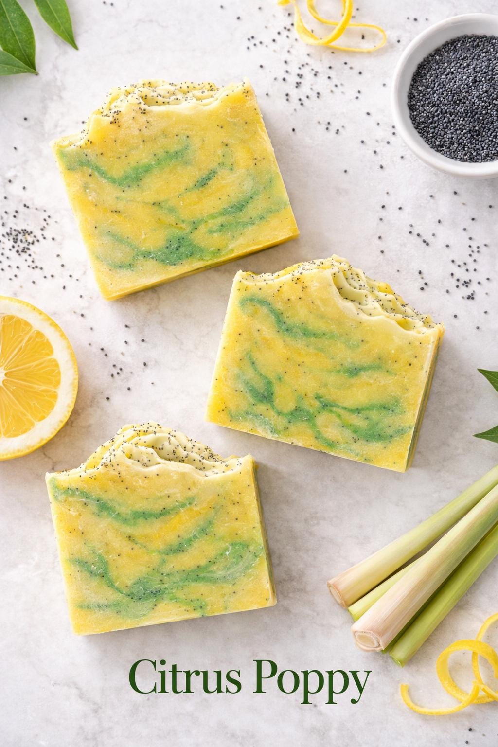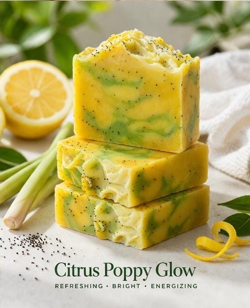 ✨ Why You’ll Love It • Fresh, uplifting citrus scent • Gentle exfoliation from poppy seeds • Rich, creamy, moisturizing lather • Long-lasting, hard bar • Handcrafted in small batches