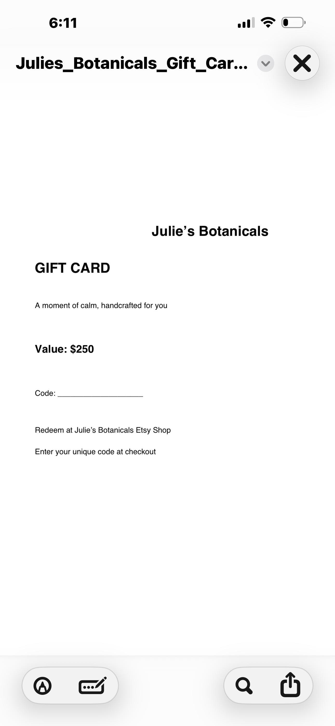 ✨ Please Note: This is a Julie’s Botanicals shop gift card and is not affiliated with Etsy gift cards.